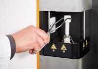 –  Mẫu sau đó được đặt lên bệ trước lò nung và phép đo có thể được bắt đầu.